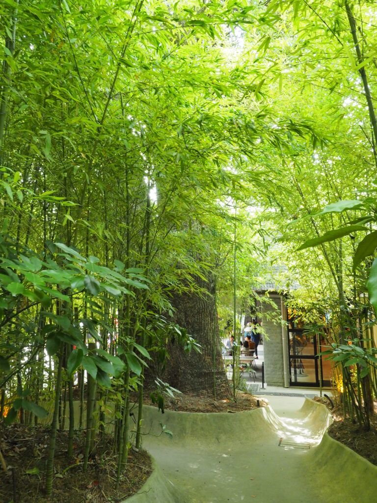 やわらかな光が差し込む竹林や木々の景色がとてもきれいで、写真を撮りながらゆっくり歩きたくなります。